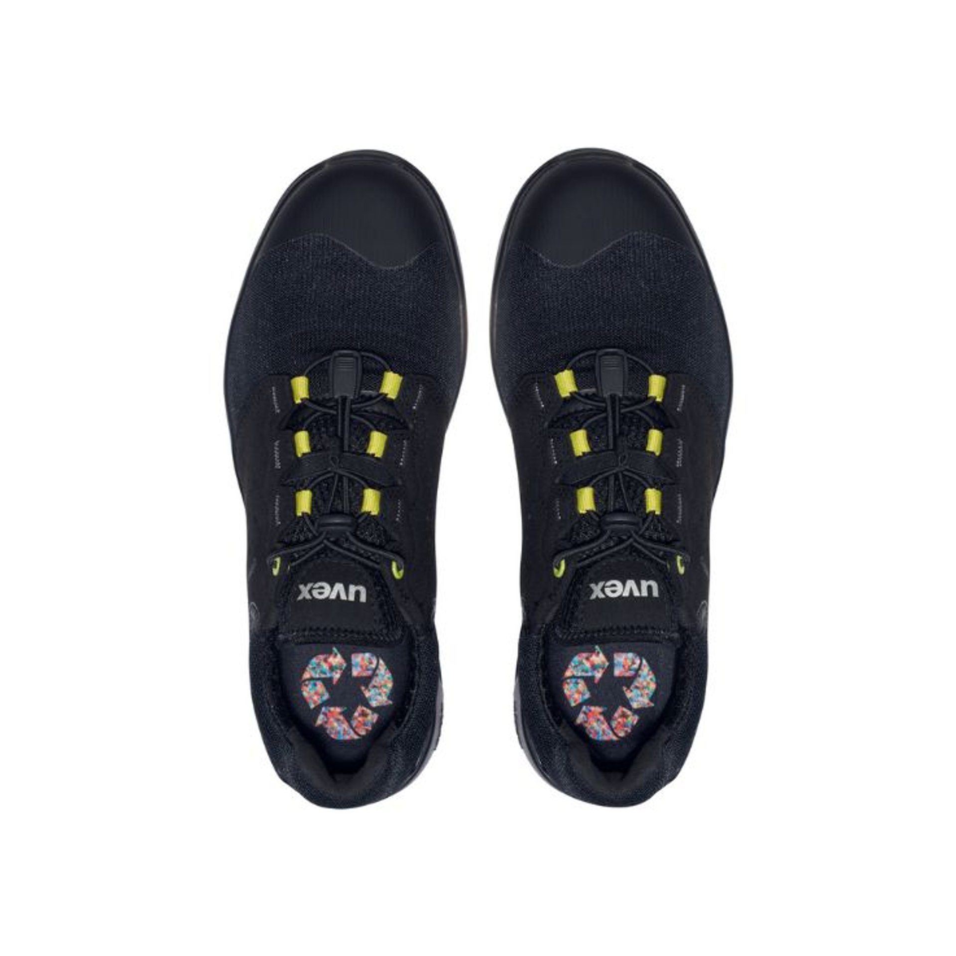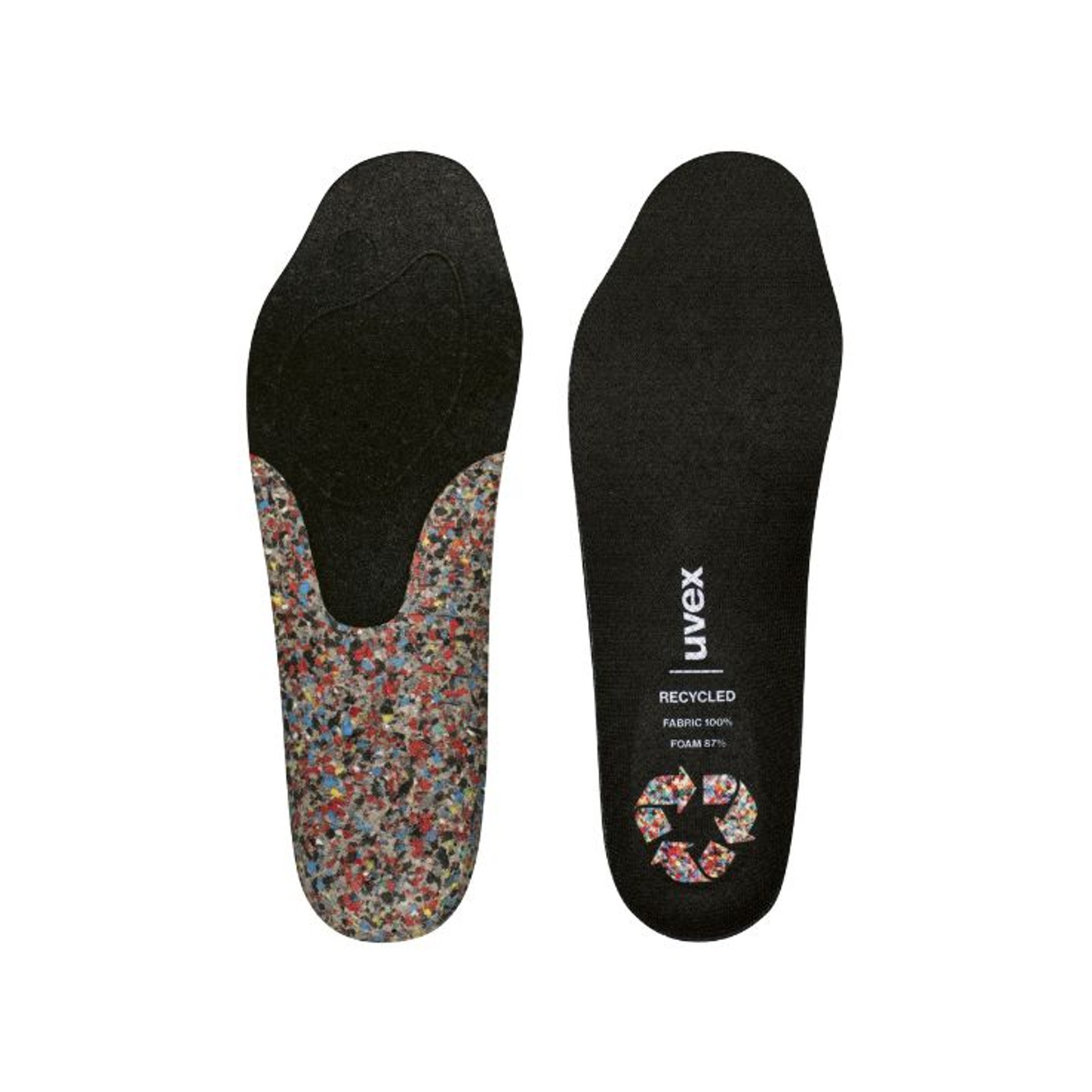 - uvex x-flow range footbed is made from 87% recycled production waste foam and the top cover fabric is made from 100% recycled PET plastic