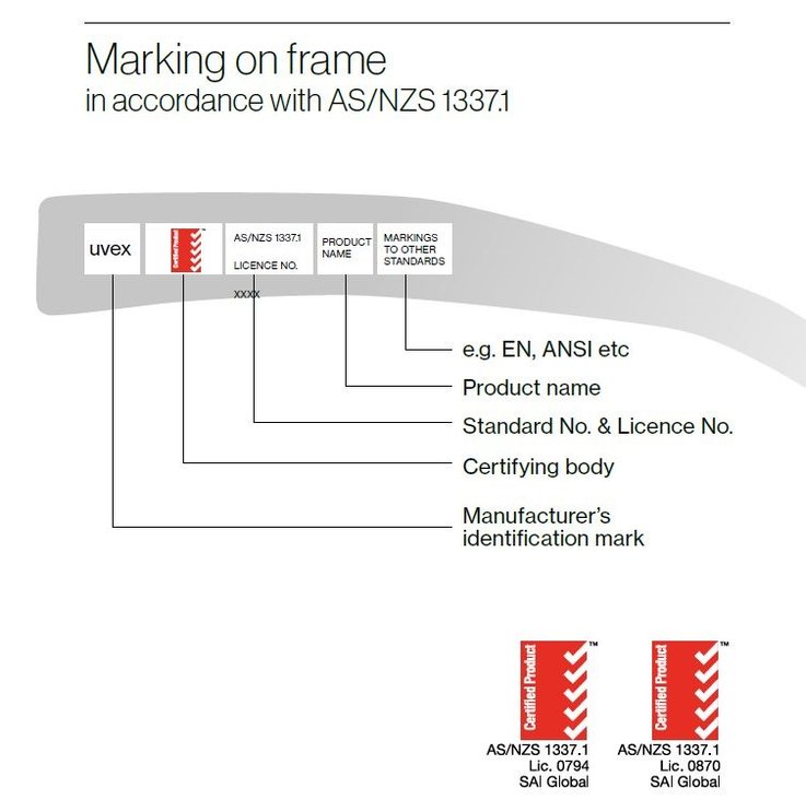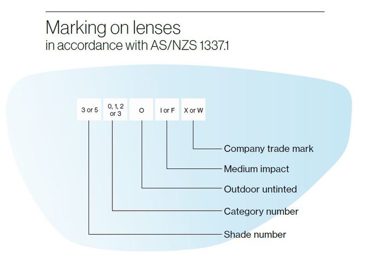 Look for compliance labels or markings on the eyewear to ensure they meet the Australian and New Zealand Safety Eyewear Standard (AS/NZS 1337:1 2010). These labels indicate the manufacturer, the impact rating, lens category number and any additional certifications.