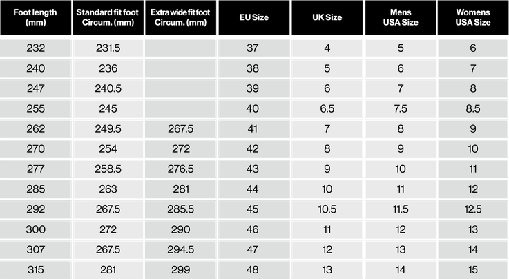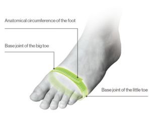 uvex multiple fit system offers multiple widths in the same length in core sizes. Fitting widths are based on the measurement of the widest part of the foot. Find your perfect fit here. Measurement is taken of the circumference of the foot at the base joint of the big toe and the joint at the base of the little toe. This will determine the required shoe width in combination with foot length